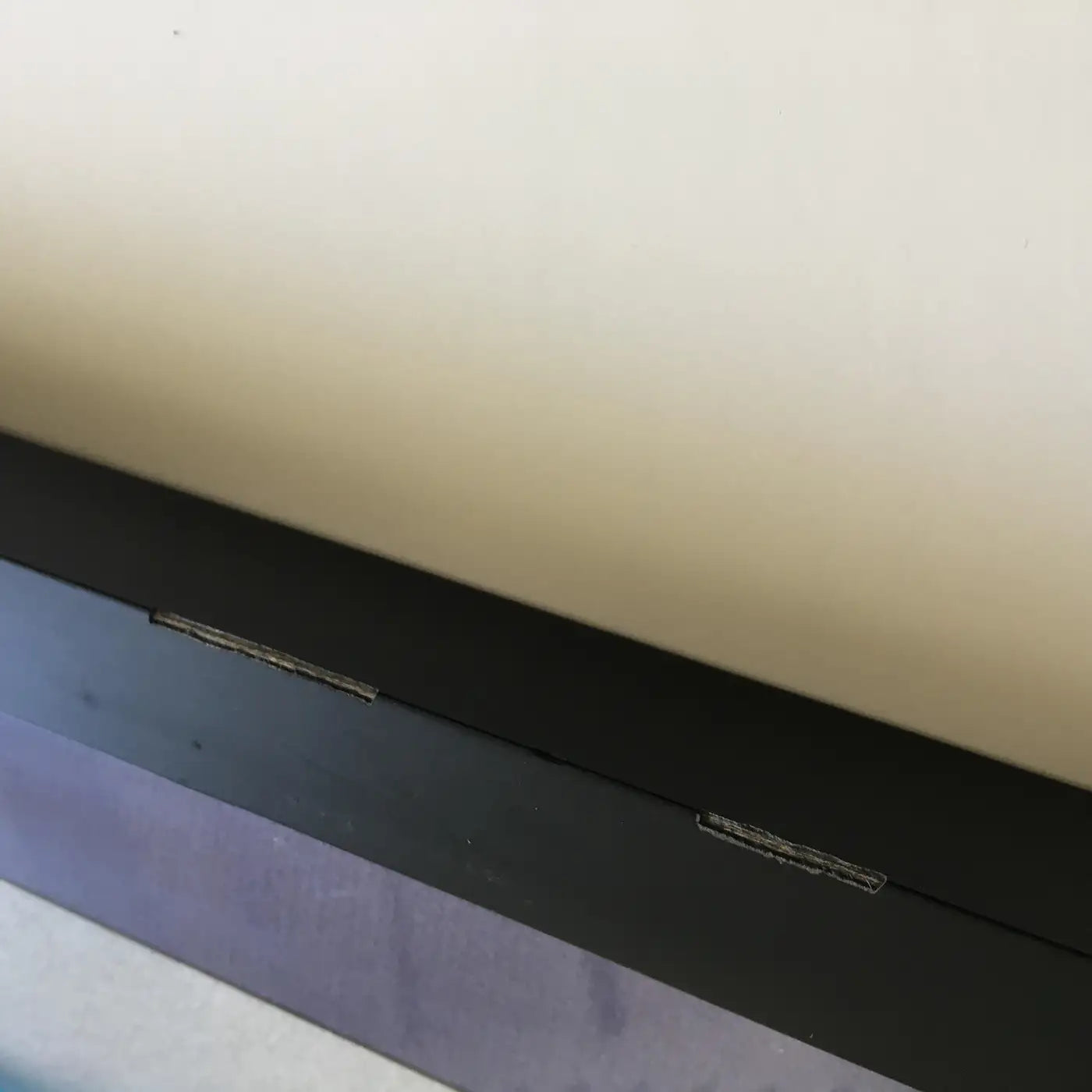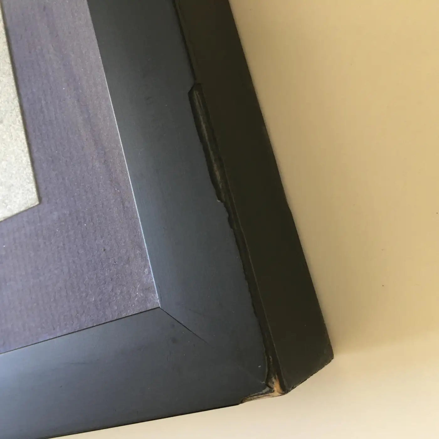 Framed in a vintage black gallery frame with purple mat and covered with acrylic: 34in H x 26.25in L x 1 .5in D