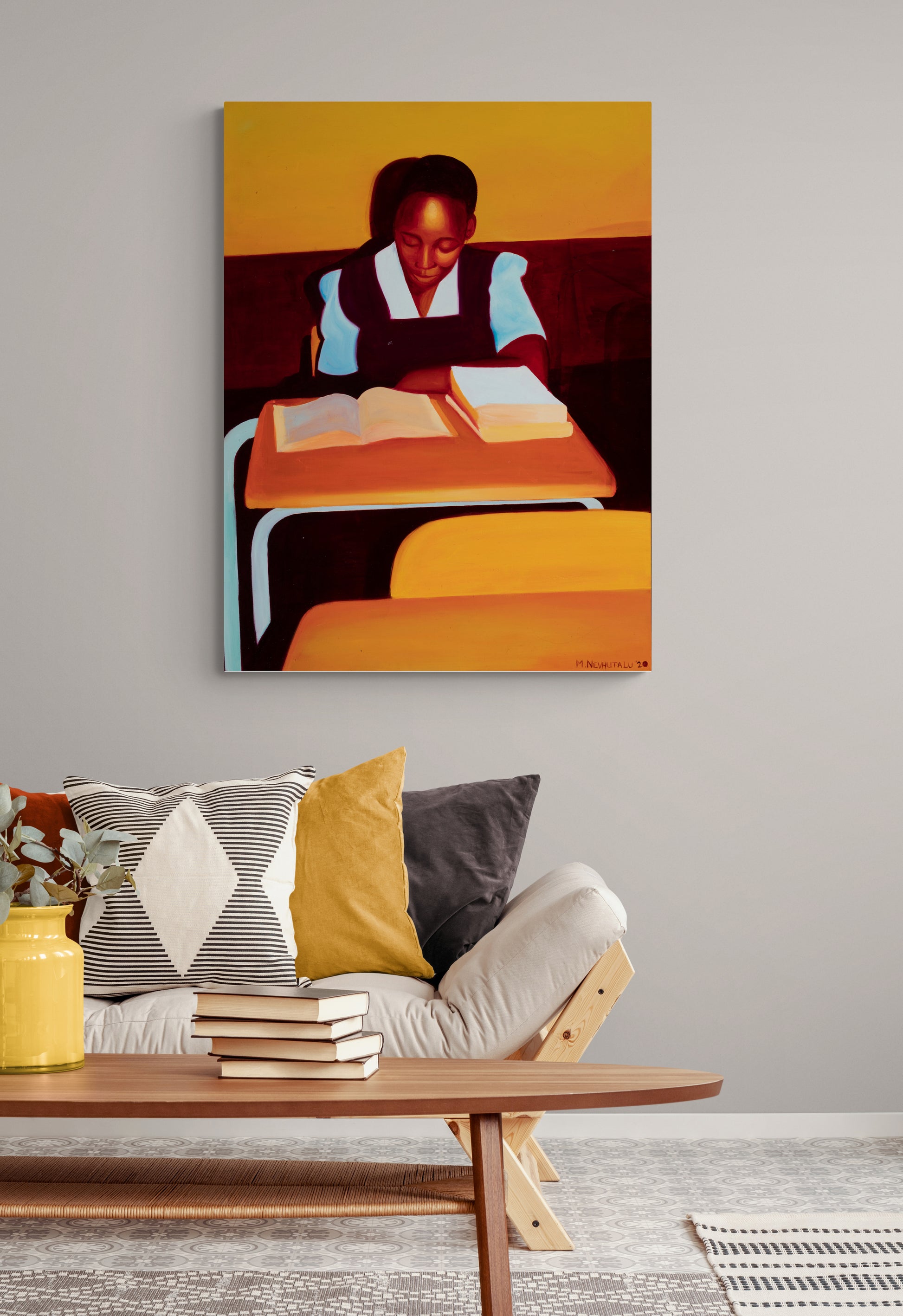 Mashudu Nevhutalu was born in Auckland Park, Johannesburg in 1992. Mashudu seeks to bring about feelings of nostalgia in the viewer looking at his work. He believes these feelings occur from anything such as a dress worn by one’s mother, or a bumper sticker that reminds one of their parents', or their own, first car. Mashudu is interested in photography and works from old family photographs in his paintings. Though these images are personal to him, he believes that we have all had similar experiences and moments captured in photographs. In his works, Mashudu’s figures are simplified and often made to look hazy and blurry, this depiction emphasizes the notion of memory being a vague and elusive thing. This effect also removes the identity of the person from the original photograph, making the work universal and the figure representative of anyone the viewer wishes them to be from their own memories. Mashudu’s use of bright, vivid colors is his way of reliving those memories and creating them anew.