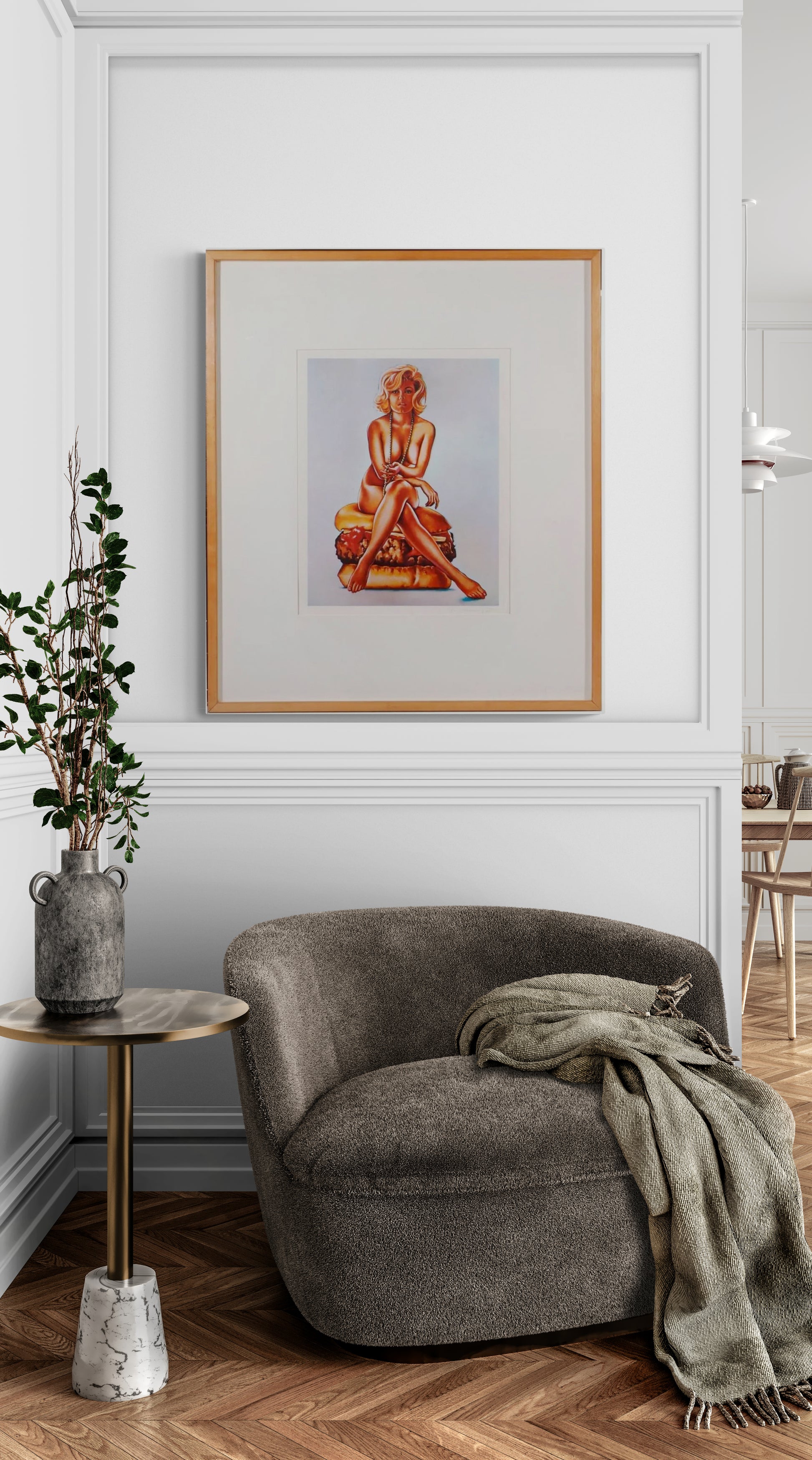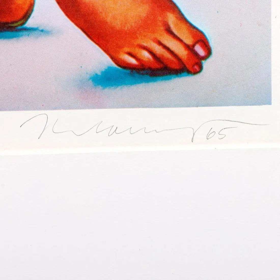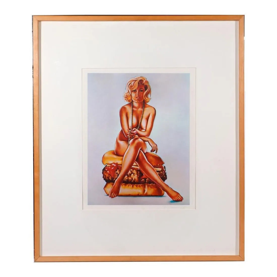 Mel Ramos was an American figurative painter and is considered an important proponent of the Pop art movement. His paintings, often depicting nude women, were a satire on how women’s bodies were used by mainstream advertising to sell products to male audiences.