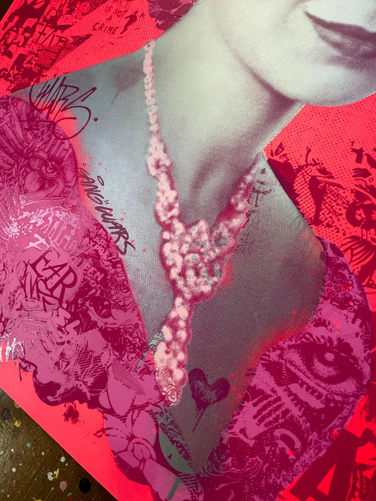 Prefab77 a.k.a. Peter Manning is a UK based artist whose origins and influences are in England, California and New York. His current work is a culmination of all his influences and obsessions. Weaving small pieces of popular culture; money, street, religious, musical and political affiliations, into visually beautiful allegorical portraits, they express an abstract idea or convey a meaning not explicitly set forth in the narrative. A modern fable, a story or a warning, often political, sometimes anti-establishment but always beautiful.