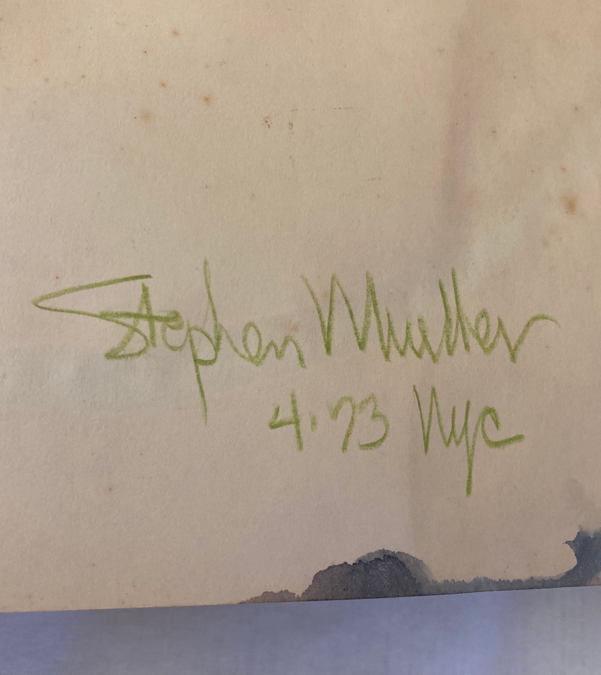 Signed 'Stephen Mueller 4 '73 NYC' on the reverse